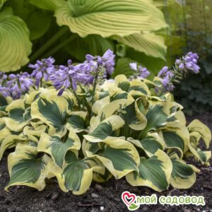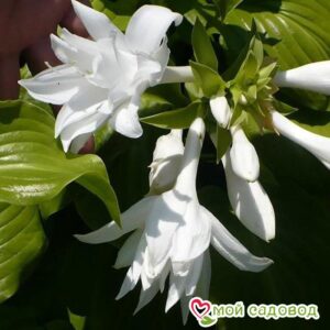 Выведен сорт в 1991 году. Название в переводе на русский язык звучит как «Июнь». Оно тесно связано с периодом цветения растения. В 2001 году сорт стал обладателем почетной награды за самую удивительную награду. Купить недорого качественные саженцы можно в нашем интернет-магазине. Как выглядит растение? Куст вырастает до 70 – 100 см. Длина цветоносов равна 90 см. Крона достаточно раскидистая. Темпы роста средние. Листья плотные, сине-желтой расцветки. Во время цветения образуются белые махровые цветки. Иногда они приобретают нежно-сиреневый оттенок. Аромат слабый или практически неощутимый. Период цветения приходится на июль-месяц. Применение в ландшафтном дизайне Сорт Джун гармонично смотрится на дачных участках, городских улицах, в парках и скверах. Многолетник универсальный, поэтому хорошо сочетается с разными представителями флоры – вечнозелеными хвойниками, листопадными деревьями и т. д. Многим нравится выращивать хосту в вазонах и контейнерах. Советы по посадке и выращиванию К почвам саженцы не предъявляют особых требований. Они прекрасно себя чувствуют на черноземах, суглинках и супесчаниках. Для полноценного роста и развития желательно использовать нетяжелые грунты, насыщенные гумусом и другими питательными веществами. Для хорошей воздухопроницаемости рекомендовано внесение биогумуса и песка. При посадке хосту важно не заглублять слишком сильно. Землю вокруг стебля аккуратно уплотняют и обильно увлажняют. Вода вытеснит все пузырьки воздуха и обеспечит более плотное прилегание почвы к корням. Положительные качества хосты Джун Представленное на фото растение характеризуется следующими качествами: хорошая сопротивляемость болезням; неприхотливость в уходе; длительное цветение; универсальное применение; невосприимчивость плохих погодных условий; доступная цена. Купить недорого хосты можно в интернет-магазине «Мой садовод». Просто отправьте понравившийся сорт в корзину, нажав на соответствующую кнопку. Мы бережно упакуем и максимально быстро доставим Вашу покупку ТК СДЭК или почтой России. Если возникнут вопросы или сложности с оформлением заказа, наши консультанты предоставят квалифицированную помощь. Мы гарантируем высокое качество посадочного материала и дорожим мнением каждого покупателя!