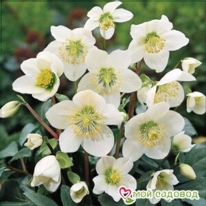 Выгодный комплект Морозника. МОРОЗНИК ДАБЛ ЭЛЕН ПИКОТИ МОРОЗНИК ВОСТОЧНЫЙ ЭЛЕН ГРИН МОРОЗНИК ВАЙТ В средней полосе нашей страны морозник восточный дает цветы уже в двадцатых числах марта. Даже когда выпадает снег и воздух охлаждается до –5… 6 градусов, цветение продолжится без малейших последствий. Цветки у морозника восточного имеют необычную конфигурацию. Важно: то, что большинство людей считают цветком, на деле оказывается чашелистиком. Настоящий же цветок морозника настолько скромен, что на него попросту не обращают внимания. Подбирая место для посадки морозника, нужно отдавать предпочтение участкам, затененным деревьями или кустарниками. Высадка на хорошо освещенных или очень темных местах возможна, но редко дает хороший результат. Морозник восточный хорошо отзывается на посадку в глинистую почву с нейтральной реакцией. Влажность должна быть умеренна – как чрезмерное увлажнение, так и иссушение противопоказано. Ожидать всходов при посеве семян надо на следующую весну. Когда появится 2 или 3 полноценных листа, всходы придется пикировать. Пересаживать морозник на постоянное место можно с разрывом 0,15-0,2 м между отдельными саженцами. Величина посадочных ям должна быть 30х30х30 см, при этом меж кустиками следует соблюдать дистанцию около 0,3 метров. Ямку на ½ часть надо засыпать компостом. После этого корневище морозника помещают в ямку и постепенно засыпают ее почвой, которую хорошо уплотняют. Высаженные цветы надо полить. Посаженные кустики нужно в течение 20 суток с момента высадки обильно и часто поливать.