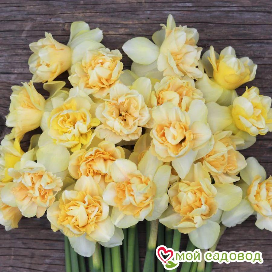 Очаровательные махровые нарциссы Арт Дизайн – это самые солнечные и жизнеутверждающие луковичные весеннего цветения. Они не оставят равнодушным никого – во время роспуска бутонов этого сорта невозможно отвести глаз от удивительных цветов. Крайние лепестки окрашены в молочно-кремовые тона, махровая коронка имеет теплый желтый оттенок. В нашем интернет-магазине вы сможете купить Нарцисс Так же возможно вас заинтересуют Нарцисс мини Сан Диск и Нарцисс Пинк Уандер .