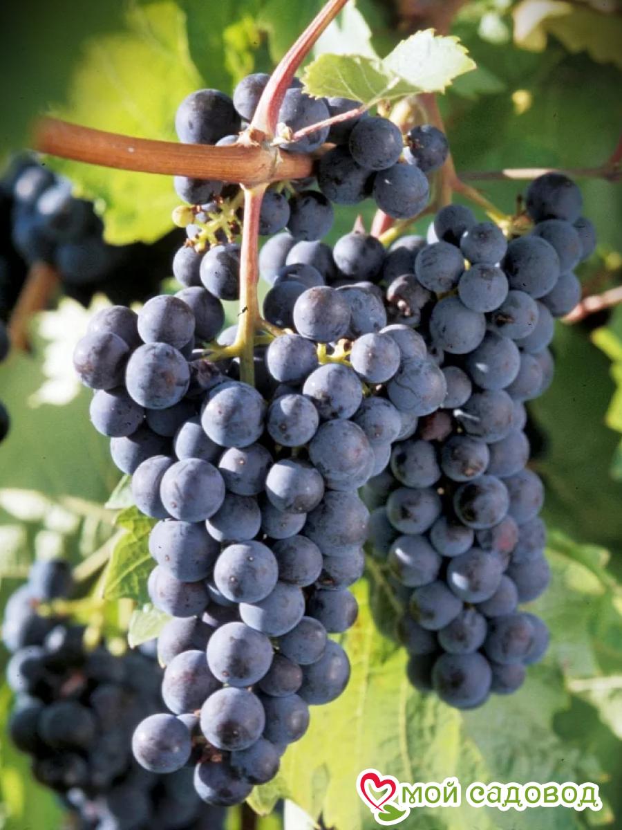 Виноград неукрывной Мариновский — морозостойкий сорт, зимует без обязательного укрывания. Куст сильнорослый, рост быстрый, может использоваться в качестве декорирования , молодой лист красный. Лоза высокорепродуктивна. Гроздь конически-цилиндрическая, плотная, 300 гр. Ягода овальная, иссиня-черная, 12 мм. Мякоть сочная, мясистая, кожица плотная, сок не окрашен. Сорт винный, урожайность и транспортабельность высокая. Магазин Мой Садовод, рекомендации по уходу Уход за виноградом сводится к регулярным поливам в сухую погоду, подкормкам и формированию куста. Для подкормки используют минеральные и органические удобрения (перепревший навоз, компост). Ранней весной кусты виноград поливают полным минеральным удобрением, растворенным в воде, перед цветением такую подкормку повторяют. Перед созреванием вносят фосфорно-калийные удобрения, а после сбора урожая проводят подкормку калием для повышения зимостойкости растений. Кроме того для лучшего вызревания лозы рекомендуется удаление пасынков и прищипывание верхушек в начале сентября. Формирование куста Винограда. Для формирования виноградных кустов необходимо установить надежную опору. Самая простая представляет собой два столба с несколькими рядами проволоки между ними. По мере роста побеги подвязывают к проволоке, задавая им нужное направление. Формирование куста винограда начинают с первого года, оставляя не более двух здоровых побегов у основания, остальные выламывают. На второй год на кусте оставляют по три почки на каждом побеге, на третий год на каждом плече оставляют 2-3 сильных побега, остальные удаляют. Пожалуйста, помните, что транспортировка и пересадка — стресс для растения. Перед высадкой в открытый грунт обработайте корневую систему стимулятором роста. С заботой о растениях, Мой Садовод. В нашем интернет-магазине вы сможете купить Столовый сорт винограда Так же возможно вас заинтересуют Виноград Румба и Виноград Лидия Розовая изабелла