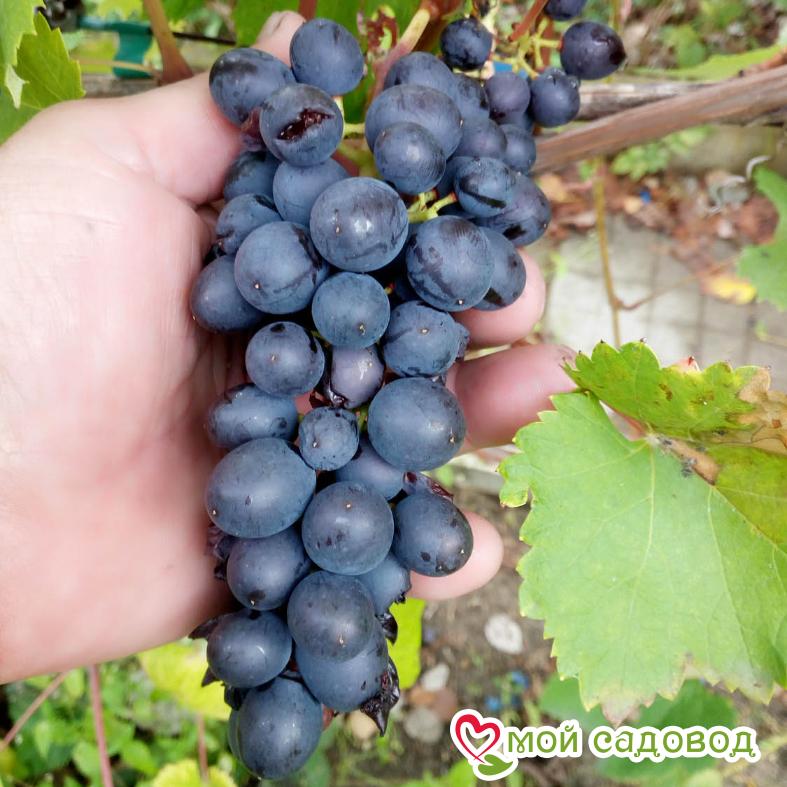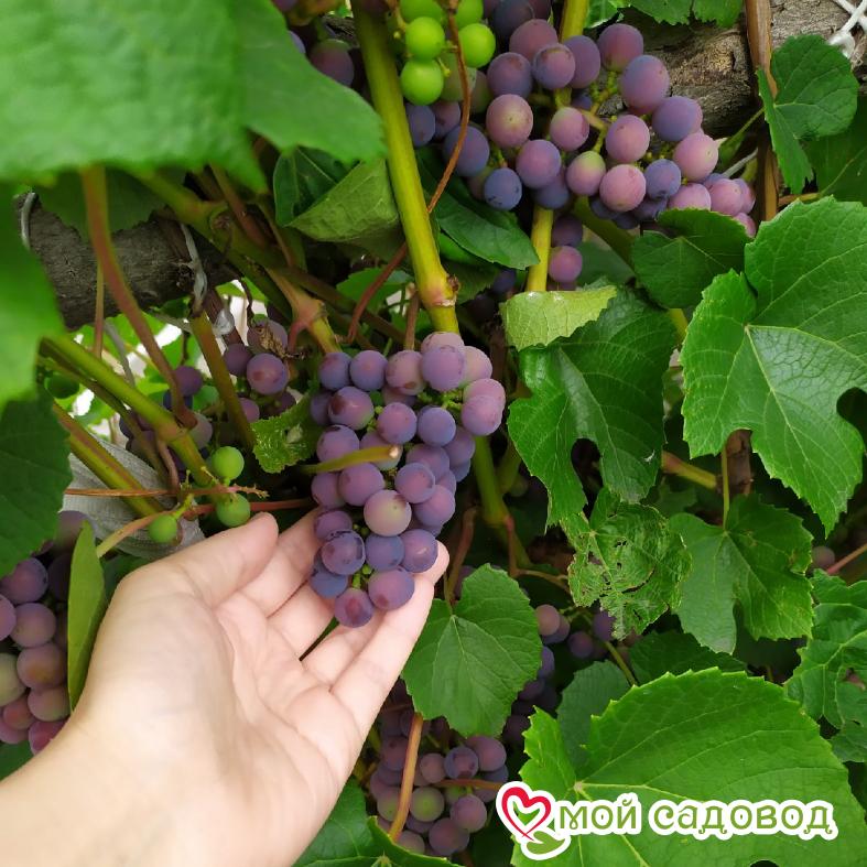 Этот вид винограда относится к сортам раннего созревания. Он обладает довольно сильными и мощными ветками. Все кусты являются сильнорослыми и раскидистыми, иногда приходится даже сдерживать рост растительности. Виноград Таежный практически не болеет, кроме того, он совсем неприхотлив в уходе. Нередко его используют для приготовления различных красных вин. Срок созревания Такой вид винограда отличается очень ранним сроком созревания. Время от начала цветения до полной спелости составляет примерно 90-95 дней. При этом время для сбора урожая наступает в середине-конце августа. Цветение приходится на май. Грозди Грозди у этой разновидности винограда обладают конической формой, они довольно крупного размера, масса одной грозди может достигать примерно 150-200 граммов. Наполненность у них средняя. Все они немного рыхлые. Магазин Мой Садовод, рекомендации по уходу Уход за виноградом сводится к регулярным поливам в сухую погоду, подкормкам и формированию куста. Для подкормки используют минеральные и органические удобрения (перепревший навоз, компост). Ранней весной кусты виноград поливают полным минеральным удобрением, растворенным в воде, перед цветением такую подкормку повторяют. Перед созреванием вносят фосфорно-калийные удобрения, а после сбора урожая проводят подкормку калием для повышения зимостойкости растений. Кроме того для лучшего вызревания лозы рекомендуется удаление пасынков и прищипывание верхушек в начале сентября. Формирование куста Винограда. Для формирования виноградных кустов необходимо установить надежную опору. Самая простая представляет собой два столба с несколькими рядами проволоки между ними. По мере роста побеги подвязывают к проволоке, задавая им нужное направление. Формирование куста винограда начинают с первого года, оставляя не более двух здоровых побегов у основания, остальные выламывают. На второй год на кусте оставляют по три почки на каждом побеге, на третий год на каждом плече оставляют 2-3 сильных побега, остальные удаляют. Пожалуйста, помните, что транспортировка и пересадка — стресс для растения. Перед высадкой в открытый грунт обработайте корневую систему стимулятором роста. С заботой о растениях, Мой Садовод.