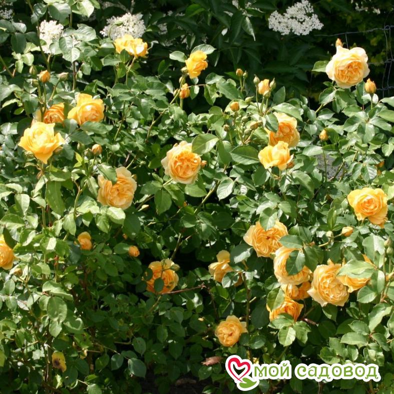 Роза Грехам Томас Эта роскошная роза из питомника Дэвида Остина быстро заняла лидирующие позиции в продаже. Получена культура в 1958 году путём опыления Charles Austin пыльцой Iceberg. Название подобрано в честь известного селекционера и садовода Грэхэма Стюарта Томаса. Иногда он встречается под названием Ausmas, Lemon Parody, English Yellow, AUSmas. Миру сорт был представлен в 1983 году на выставке в Челси. Он неоднократно завоёвывал почётные награды и призы, отмечался на разных конкурсах. Ботаническое описание Цвет розы очень необычный – тёпло-жёлтый с примесью золотистого. Края лепестков светлее основного тона. При этом расцветка может меняться в зависимости от погодных условий. Сами цветки чашевидной формы, густомахровые (состоят из 75 лепестков), красивой старинной формы, диаметром до 10 см. Распускаются бутоны постепенно. Лепестки долгое время сохраняют слегка вогнутую форму. Так они закрывают сердцевину розы. Все цветки собраны в крупные кистевидные соцветия по 7 штук. Они раскрываются и держатся на кустах довольно длительное время. Растение источает нежный аромат чайной розы и мирры. Заканчивается период цветения с наступлением заморозков. Листья у саженцев Грехам Томас блестящие, тёмно-зелёной окраски, крупного размера. Кусты ветвистые, активно растущие, с немного поникающими побегами. На габариты многолетника влияют условия произрастания. К примеру, в прохладном климате, рассада может вырастать до 1,2 м. В жарких регионах её высота достигает 2,5 – 3 м, а диаметр – 1 – 2 м. Сдержать стремительное развитие куста помогает обрезка. Применение Сорт Грехам Томас идеально подходит для посадки в миксбордерах, возле деревянных беседок, на клумбах и в бордюрах (по обе стороны садовых дорожек). С такой розой легко получить живую изгородь. Как вариант, можно вырастить многолетник и на опоре: к примеру, на перголе или небольшой арке. В цветниках его рекомендуется располагать на заднем плане. В таком случае изображённые на фото саженцы будут гармонично смотреться на фоне контрастирующих однолетников: незабудок, гладиолусов, вербены, петуний. В смешанных композициях подходящими компаньонами для сорта Грехам Томас станут: котовник, дельфиниум, катран, астры, клематис, шалфей, мискантус, лаванда. Особенно благородно роза будет выглядеть рядом с обладателями синих, сиреневых, голубых и фиолетовых бутонов. Агротехника Роза Грехам Томас может выращиваться как в полутени, так и на освещённом участке. Однако лучше избегать длительного воздействия прямых УФ-лучей на многолетник. В противном случае соцветия будут выгорать. Для полноценного развития и роста вполне достаточно 5-ти часов интенсивного освещения в сутки. Также рассаду желательно разместить там, где есть свободная циркуляция воздуха. Почву цветочная культура предпочитает рыхлую, воздушную, со слабокислой реакцией (уровень рН не более 5,6 — 6,5 единиц). Для улучшения свойств субстрата в него вносят компост, плодородную землю, перепревший конский навоз и торф. Английская красавица довольно требовательна к уходу. Прежде всего, ей необходим своевременный полив. Процедуру проводят по мере подсыхания грунта в прикорневой зоне. Для полива нужна мягкая, прохладная вода. Также саженцы любят подкормки. Вносят их весной, во время завязывания бутонов и на пике цветения. Предпочтение отдают составам, насыщенным кальцием